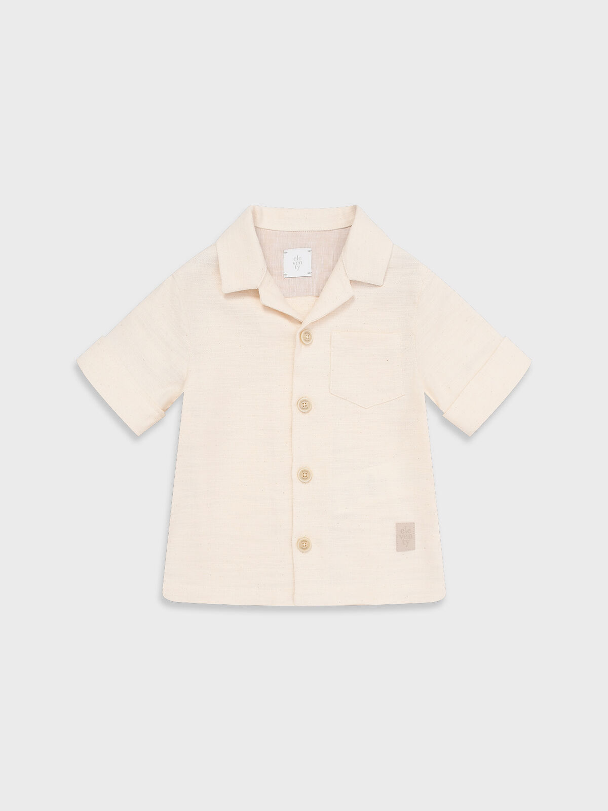 Рубашка Eleventy для мальчиков. Основой изделия служат натуральные материалы — смесь хлопка и льна, обеспечивающая комфорт и легкость в жаркую погоду. Классический фасон дополнен короткими рукавами с отворотами, удобным нагрудным карманом и лаконичным дизайном. Простота покроя и надежность материалов позволяют носить рубашку ежедневно, формируя стильный и практичный детский гардероб.
