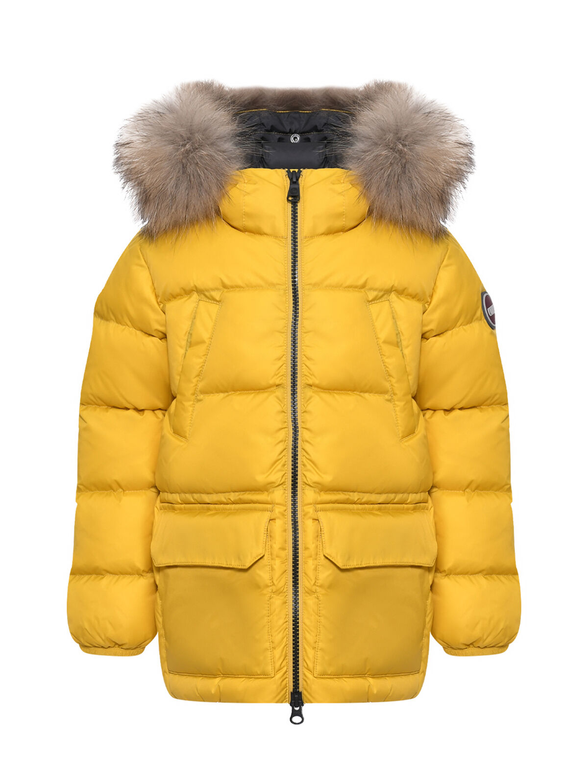 Куртка с капюшоном с мехом и накладными карманами