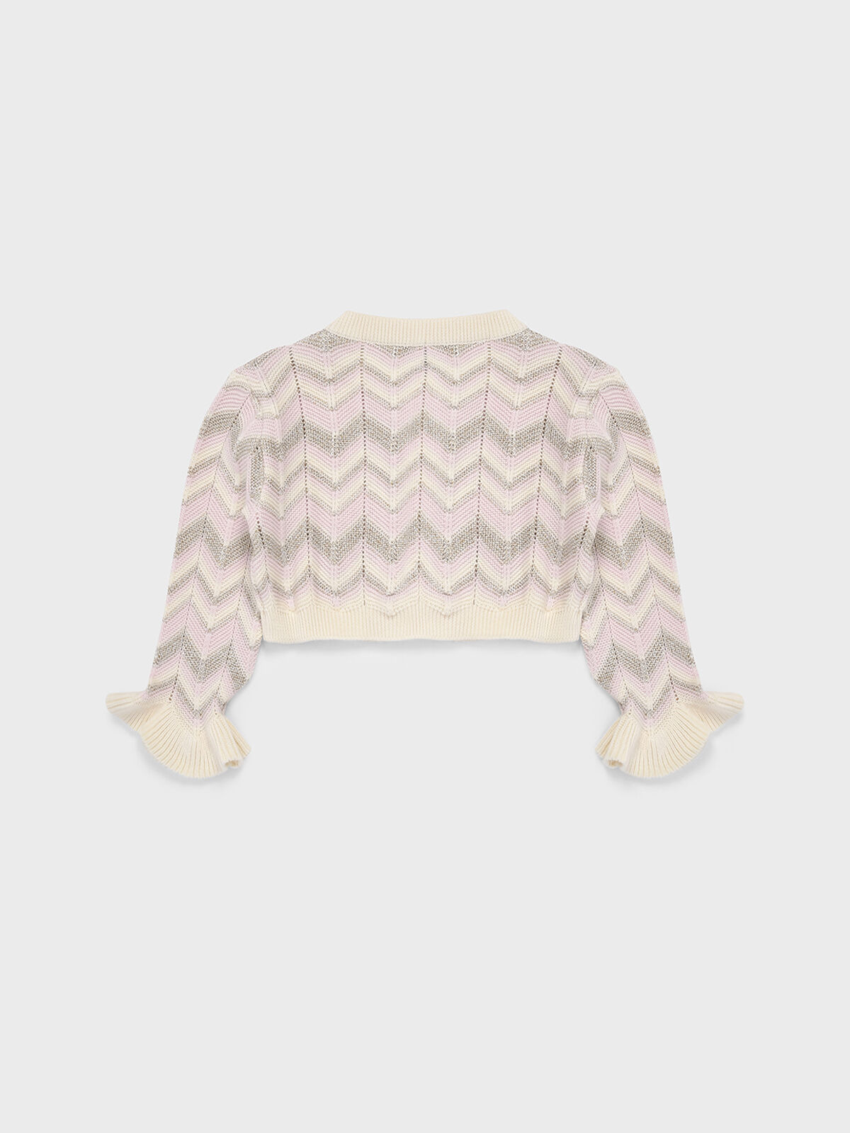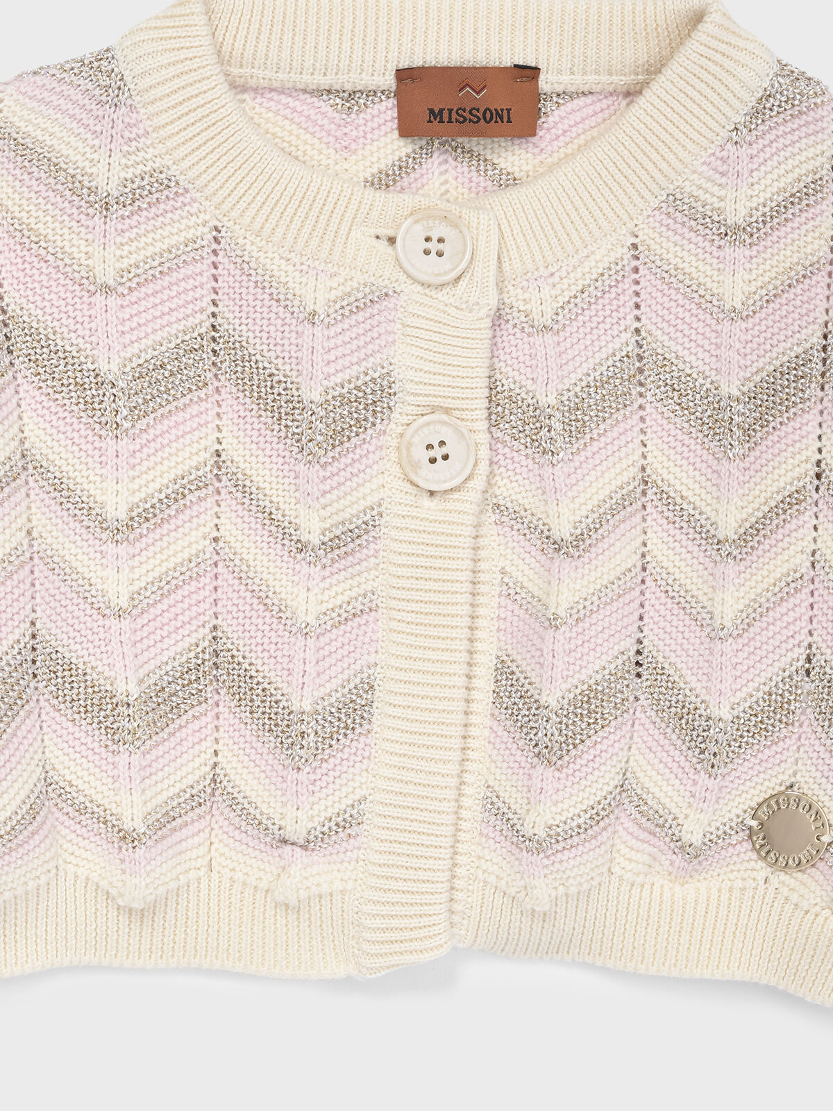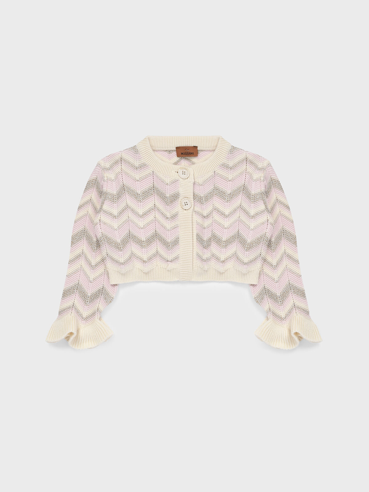 Кардиган Missoni для девочек — настоящая находка, представляющая собой гармонию утончённого стиля и отменного качества исполнения. Представленная модель выделяется запоминающимся фирменным зигзагообразным принтом в нежнейших серо-розовых оттенках, выполненных на нейтральном молочном фоне. Укороченный покрой, две изящные пуговицы и мягкие воланы на манжетах завершают образ, привнося элементы игривости и лёгкой романтичности. Кардиган изготовлен из натуральных волокон, приятно прилегает к телу и обеспечит тепло и комфорт в прохладные моменты.