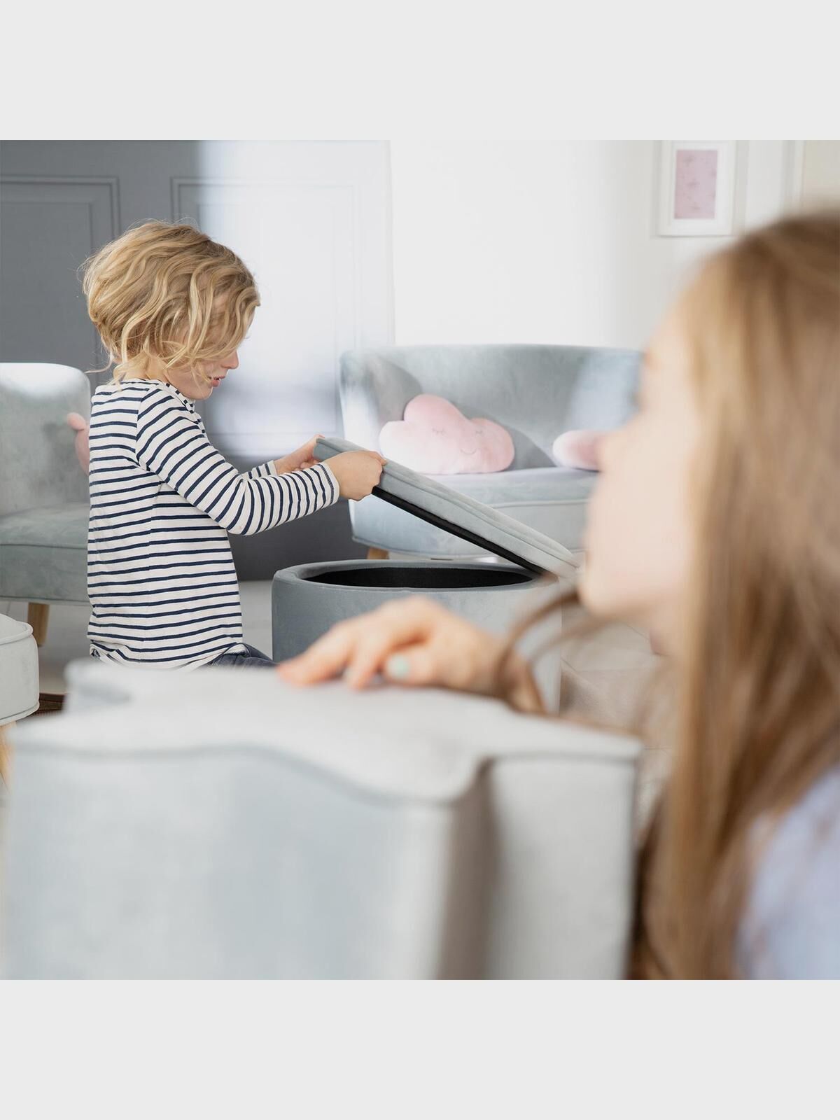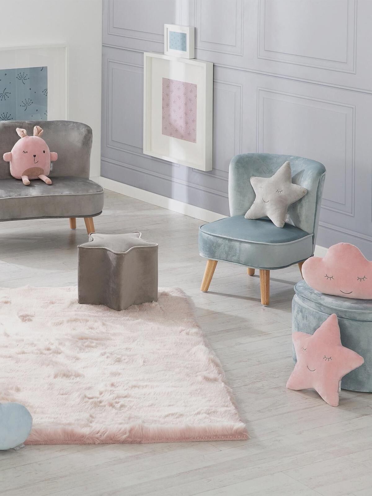 Детский велюровый овальный пуфик коллекции "Lil Sofa" - это невероятно нежная и красивая мягкая детская мебель в ретро-стиле.