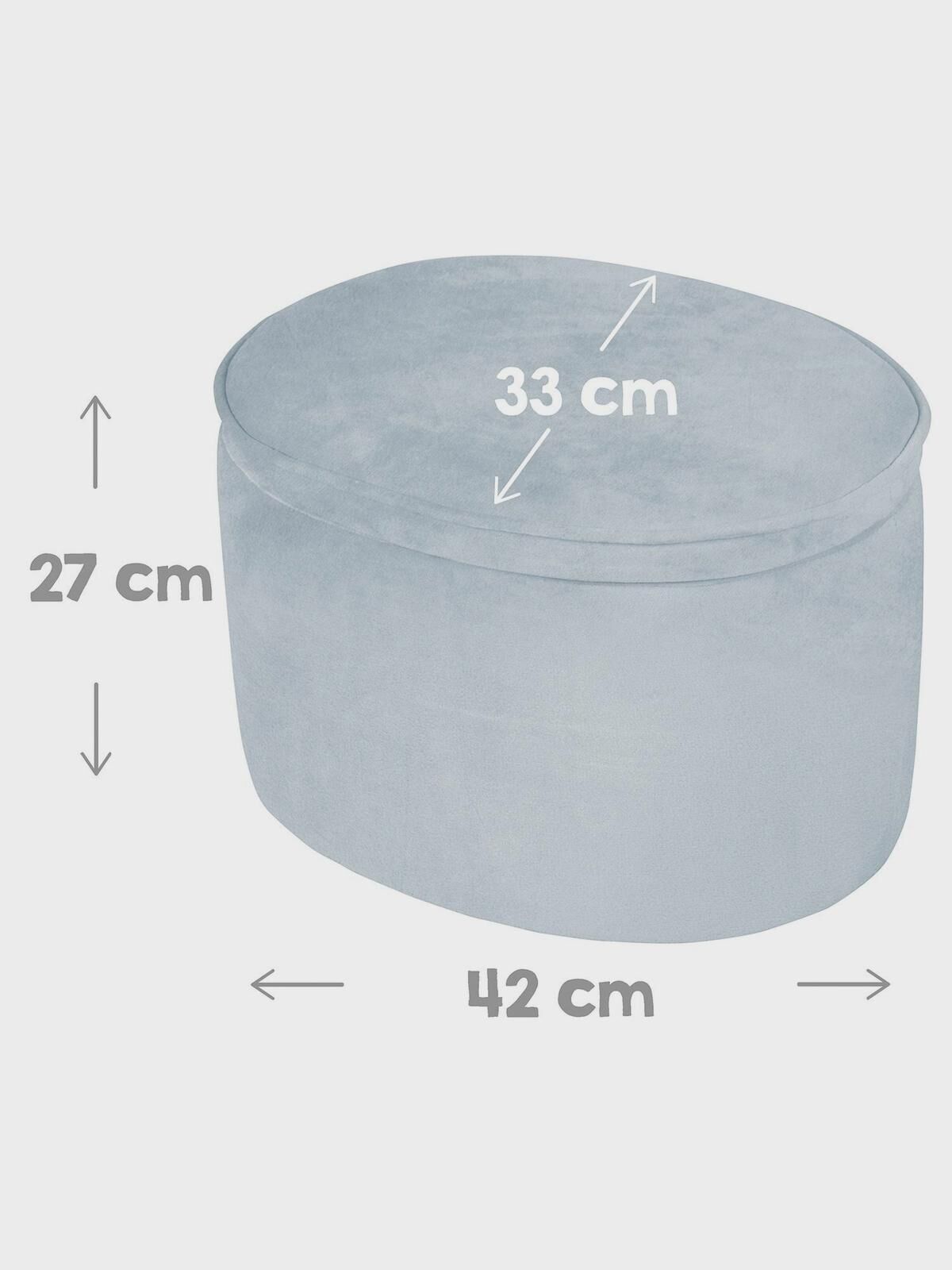 Детский овальный пуфик с мягкой обивкой из бархатистой ткани впишется в интерьер любой детской комнаты и украсит ее. Это практичный предмет мебели с функцией хранения.