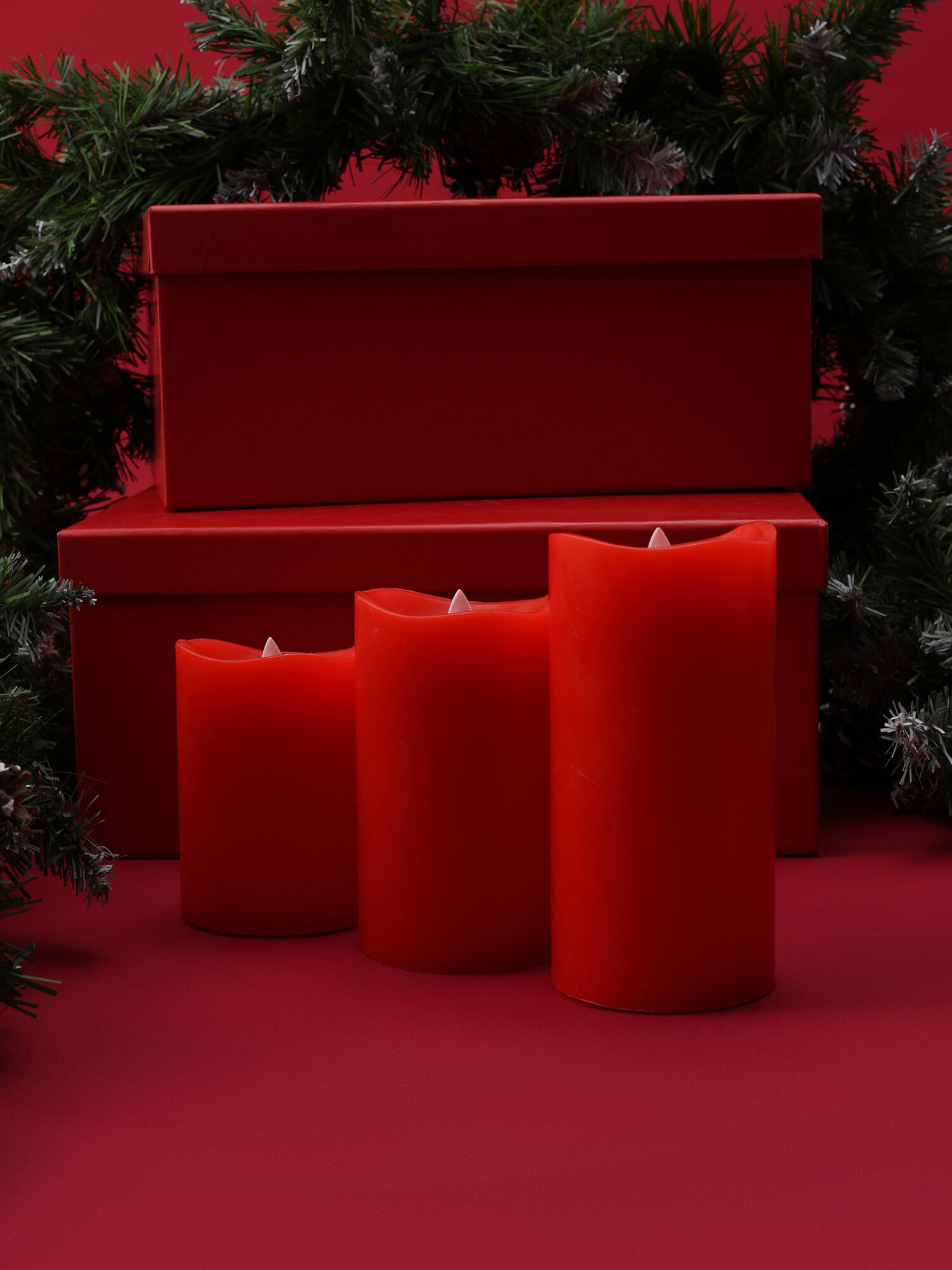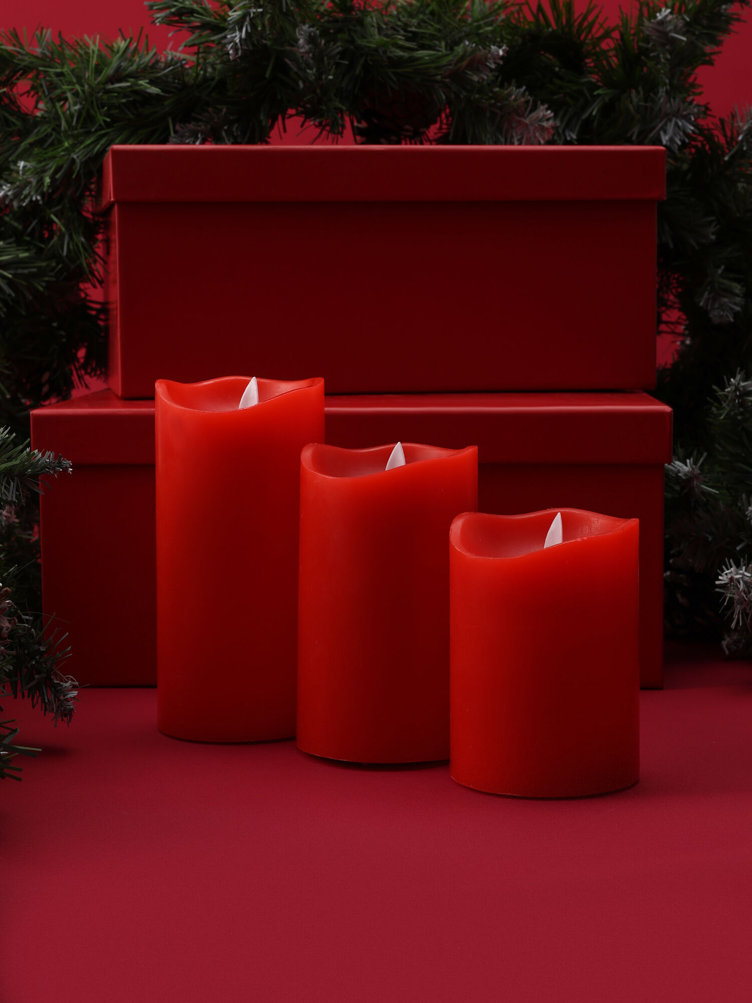 Набор красных восковых свечей из 3-х штук, 10, 12, 15 см