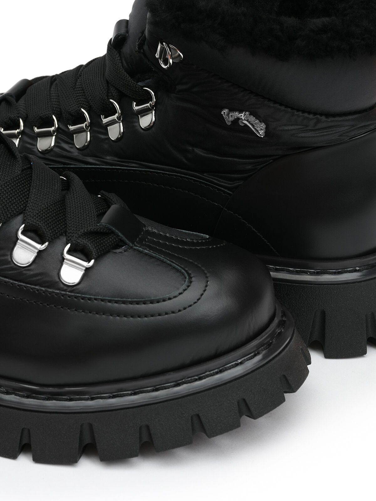 Ботинки выполнены из натуральной гладкой кожи и дополнены объемным мягким голенищем. Модель оформлена массивной рельефной подошвой из прочной резины и усилена металлическими люверсами для надежной фиксации. Внутренняя подкладка из натурального меха обеспечивает тепло и комфорт даже в холодную погоду.