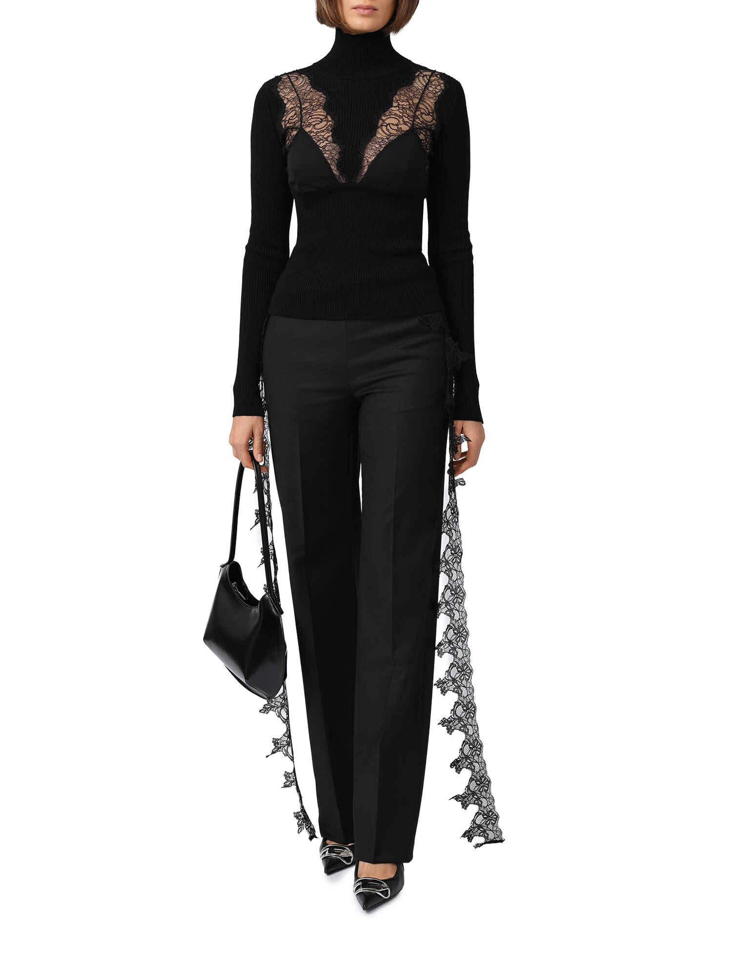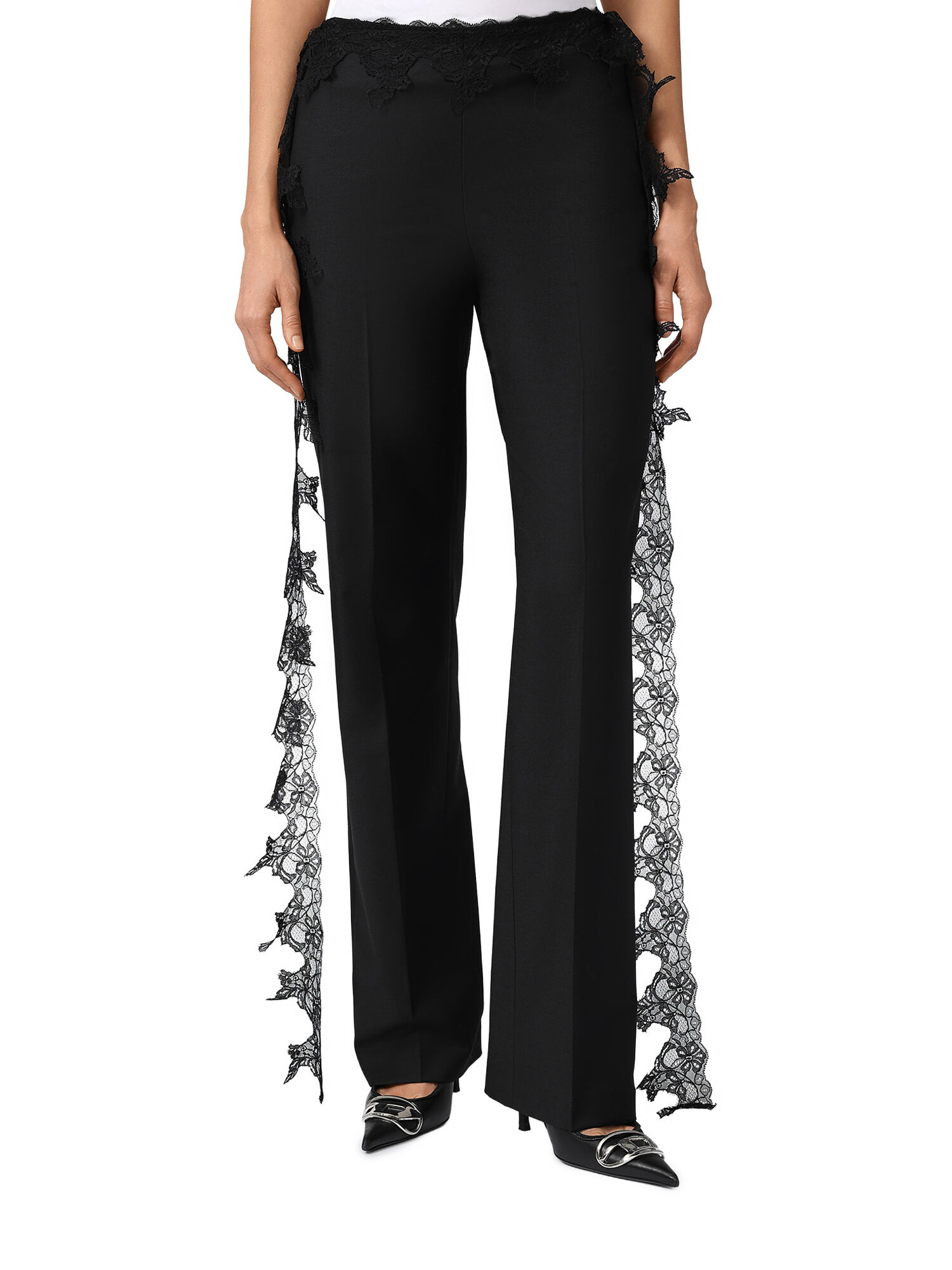 Брюки с кружевным поясом, черные