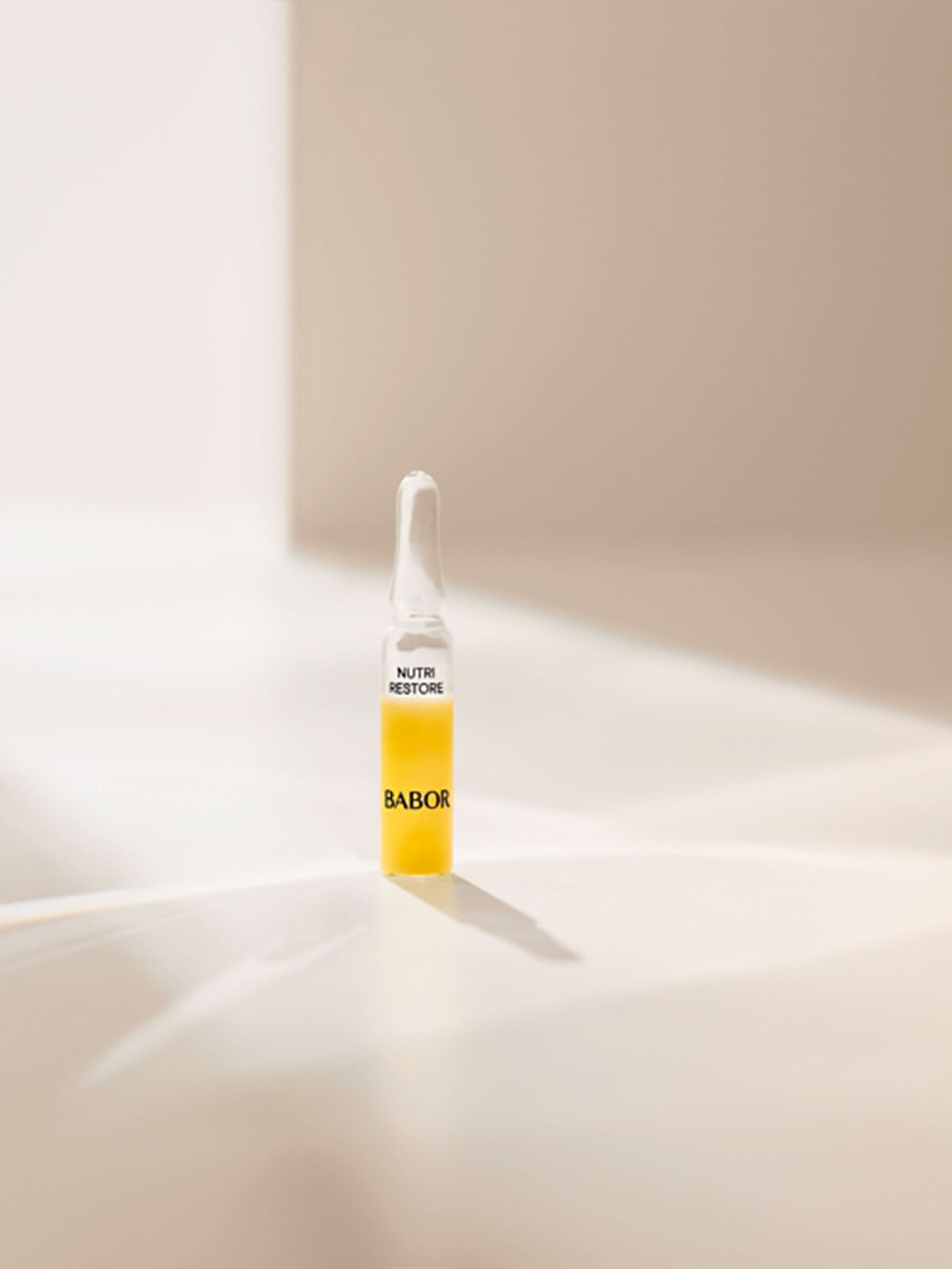 Слегка встряхните ампулу, оберните её горлышко косметической салфеткой или вставьте её в прилагаемое к упаковке пластиковое приспособление для открывания ампул. Резким движением отломите верхнюю часть ампулы.