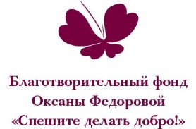 Благотворительный фонд Оксаны Федоровой «Спешите делать добро!» Девиз фонда: «Нет чужой беды и нет чужих детей в сильном государстве, в нравственном обществе». Узнать подробности